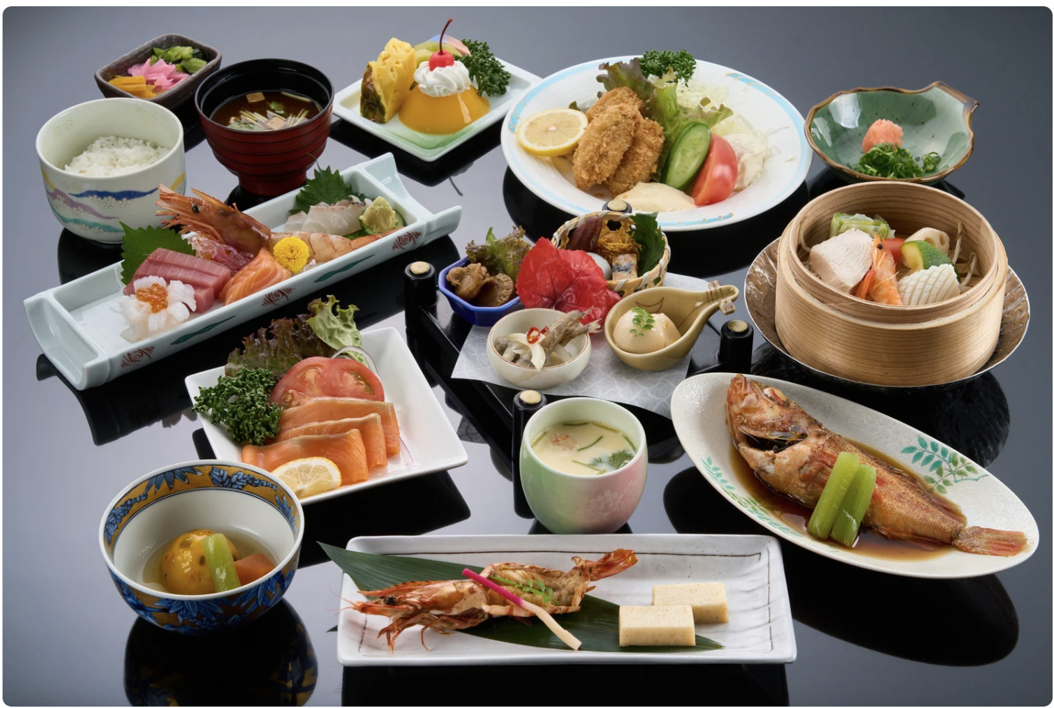 Et af højdepunkterne på en ryokan er den traditionelle kaiseki-middag – en fleretters menu der varierer efter sæson og region. Maden serveres med stor æstetisk sans og kan bestå af retter som sashimi, grillede fisk, dampede grøntsager, tempura og hjemmelavet tofu.