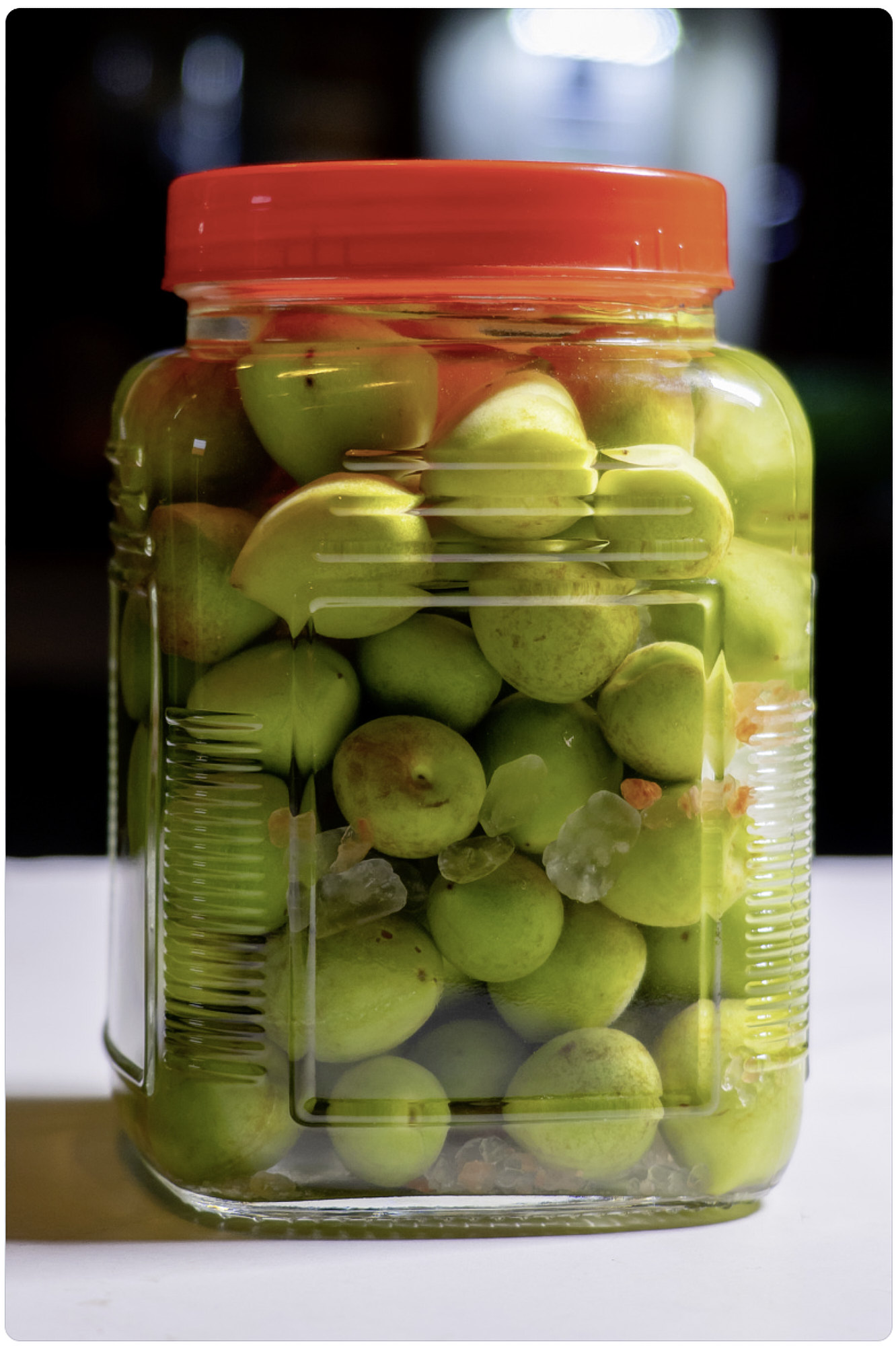 Til den hjemmelavede umeshu bruges der i Japan meget ofte en karakteristisk høj beholder med rødt skruelåg.