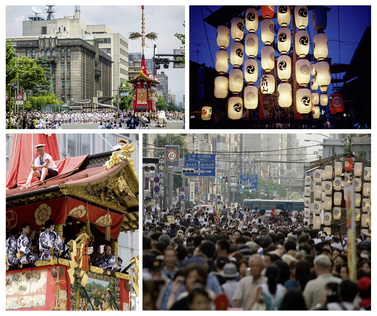 Festivalen der er Japans meste berømte festival varer næsten hele juli måned og Yasaka-helligdommen er stadig arrangør af den.